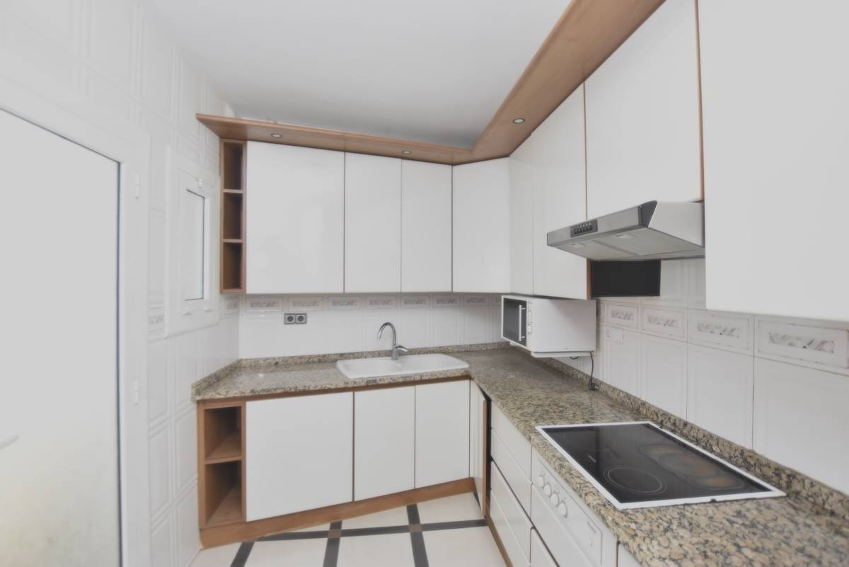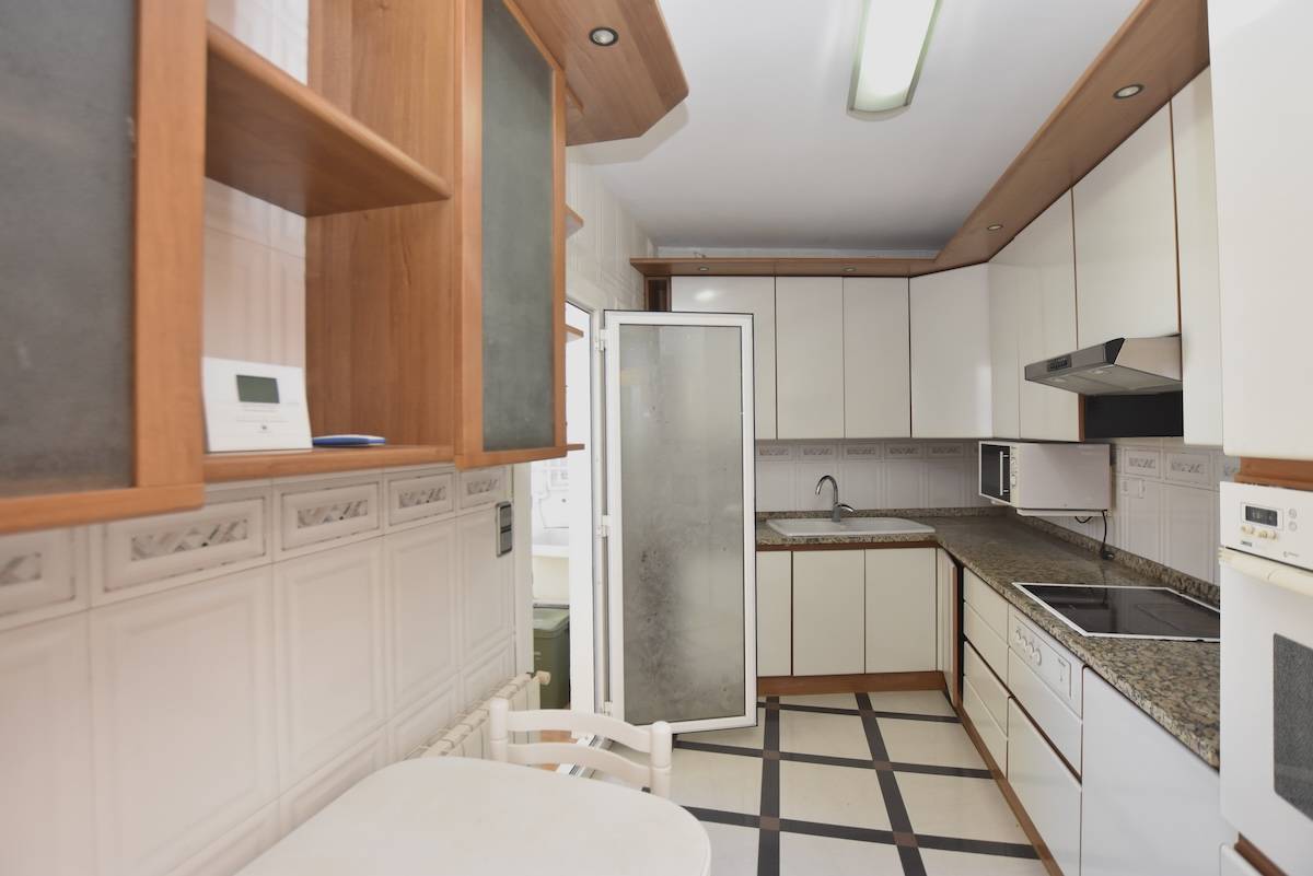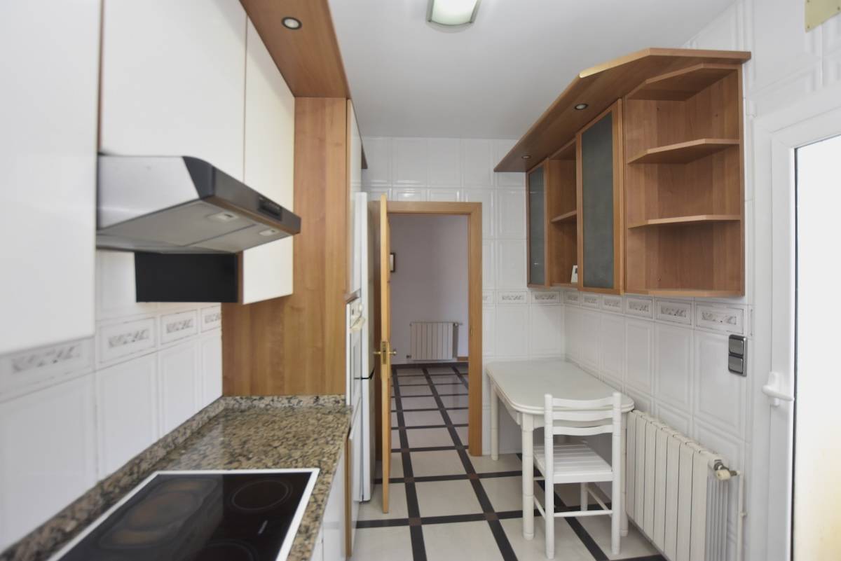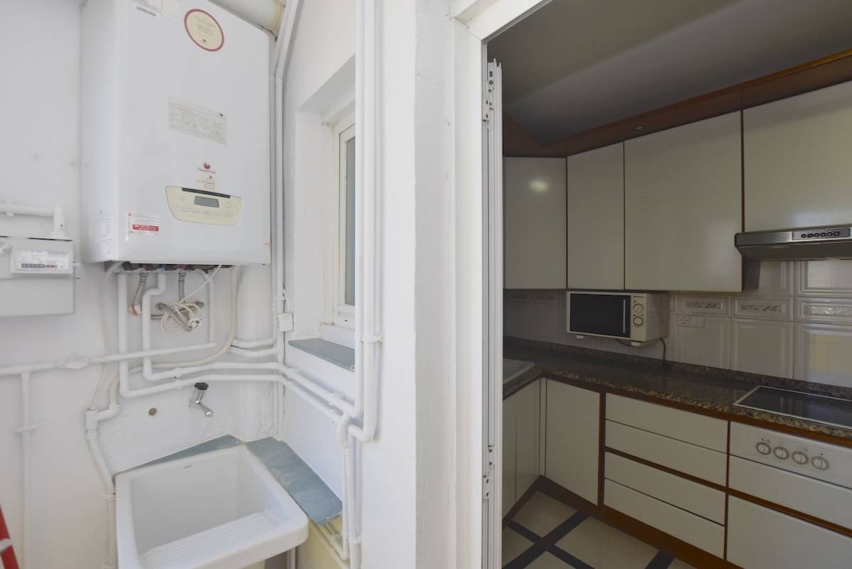 La cuisine est indépendante et fonctionnelle, avec un accès à la buanderie qui facilite le quotidien et apporte de l’ordre à l’ensemble.