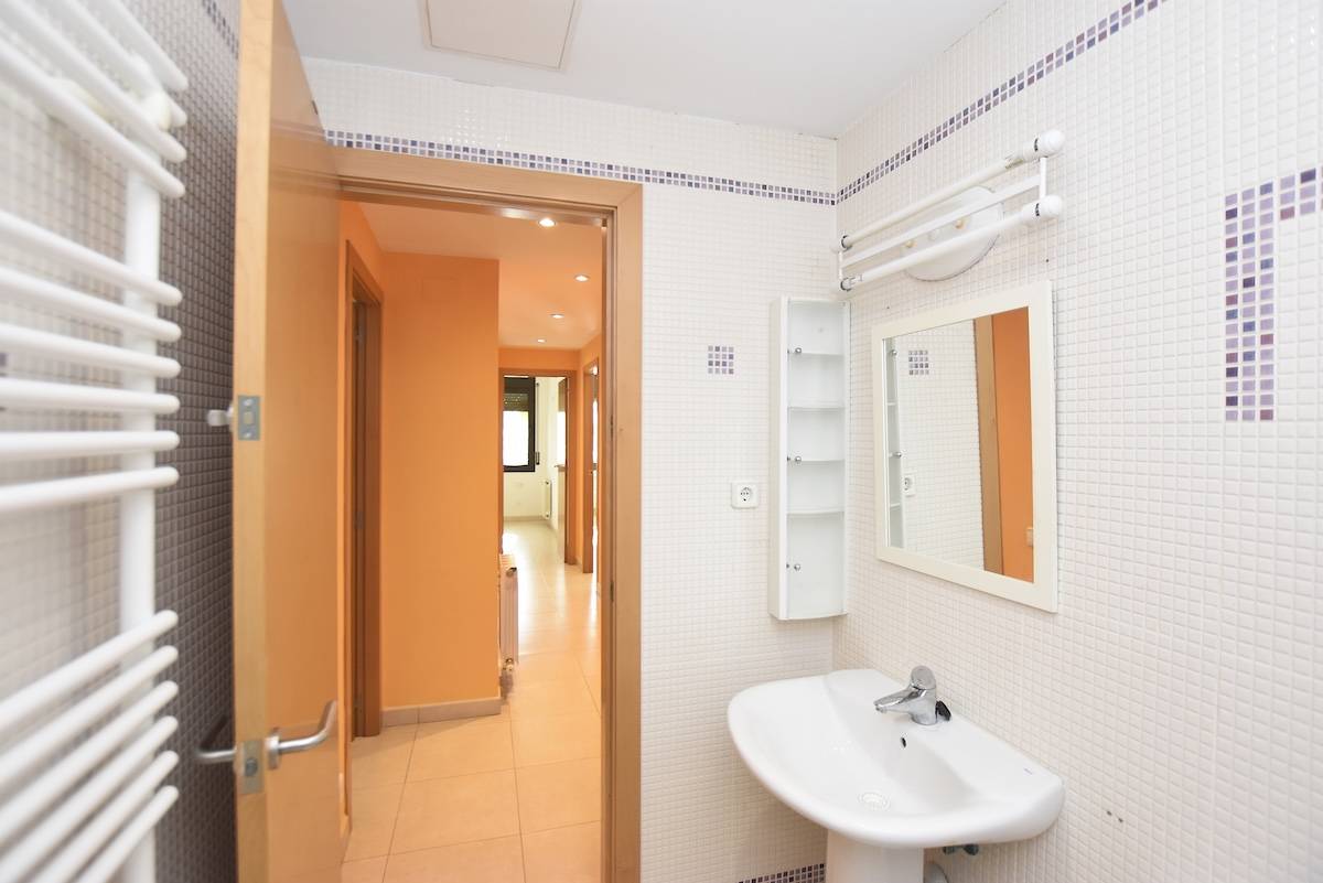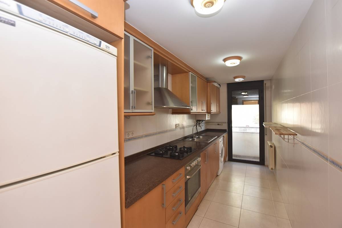 Esta vivienda, de 73 m² útiles, ubicada justo al lado de la Rambla Principal y la estación, está situada en la primera planta de un edificio con ascensor. Cuenta con un pequeño distribuidor en la entrada que separa la zona de acceso del resto de la casa. El salón-comedor es luminoso y tiene salida a un balcón orientado a mar (sureste), ideal para ventilar o simplemente dejar que entre la luz durante todo el día. La cocina es independiente y funcional.
