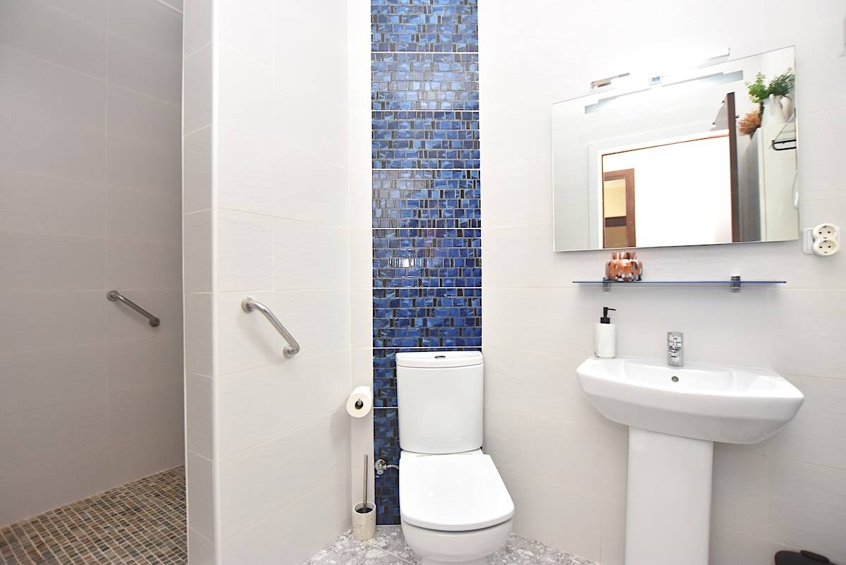 En la planta superior se sitúa la vivienda principal de aproximadamente 104 m², cómoda y bien distribuida. Dispone de un amplio salón-comedor, cocina independiente funcional y tres dormitorios, dos de ellos dobles con armarios empotrados. El baño completa una planta práctica y equilibrada, pensada para el día a día.